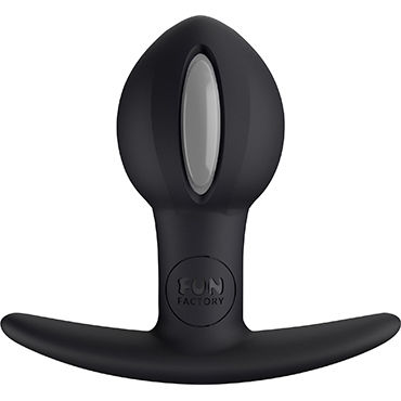 Пробка имеет плоское основание, которое, благодаря мягкому силикону, будет дополнительно стимулировать промежность, между анусом и входом во влагалище.