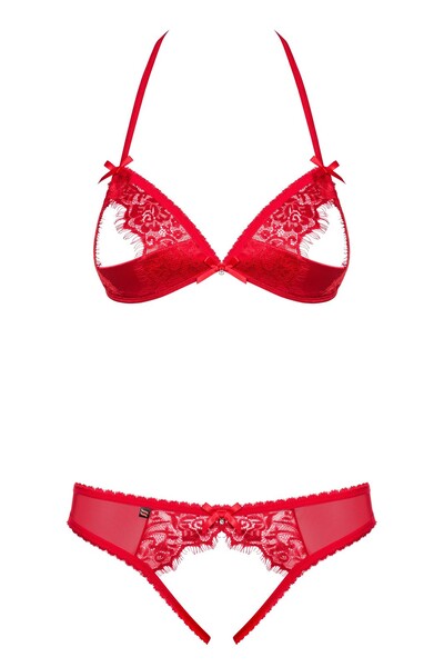 Сексуальный комплект белья 870-SEC-3 c открытой чашечкой и пикантным разрезом