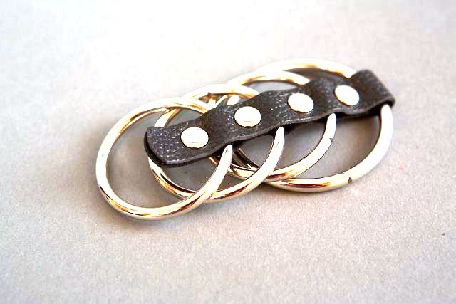 Кольца скреплены ремешком из искусственной кожи с металлическими клепками.