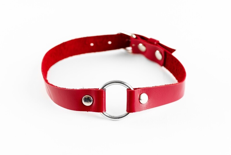 Элегантный чокер и натуральной кожи красного цвета, декорирован металлическим кольцом диаметром 3см. Ширина ремешка 2см. Удобно регулируемая длина чокера идеально подойдет на обхват шеи от 30 до 40см. Нежная натуральная кожа очень комфортна в использовании. Яркий и сексуальный аксессуар, который подчеркнет вашу индивидуальность.