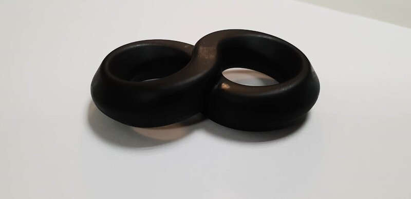 Одно колечко одевается на член, а второе на мошонку.