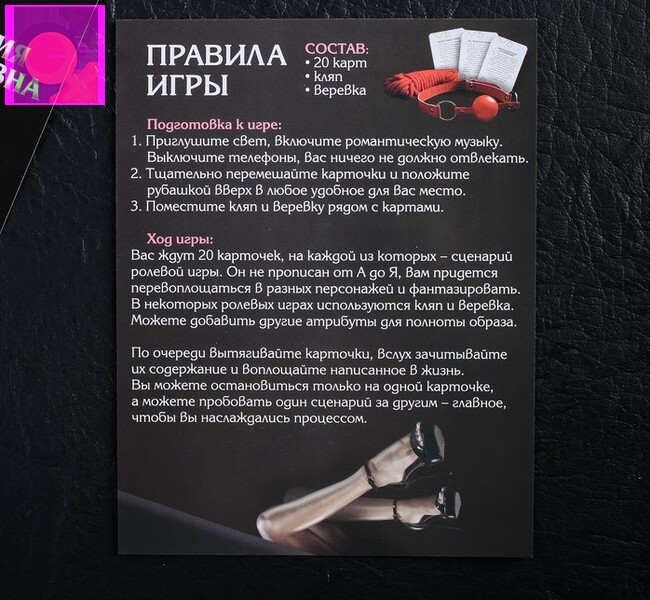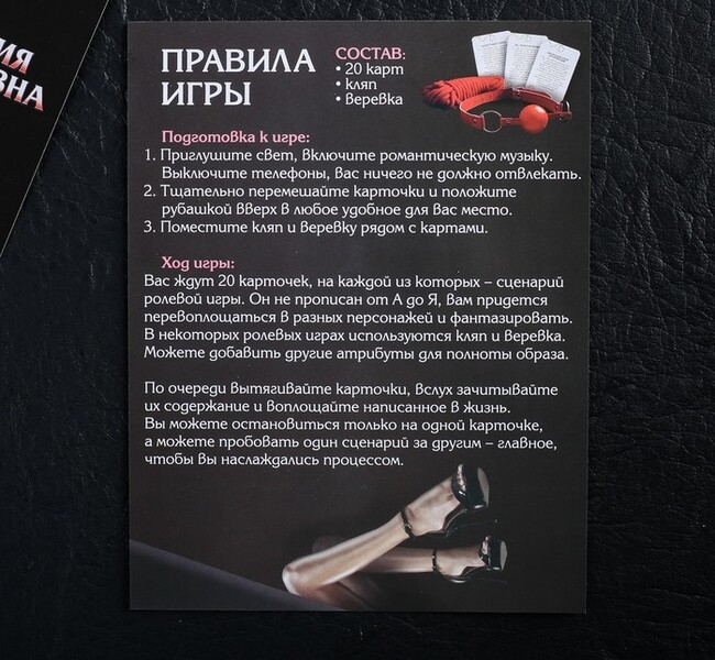 Любите ролевые игры? Кем вы хотите быть сегодня — госпожой и рабом или тайным агентом и его подружкой? В этой игре вас ждёт 20 волнующих сценариев, каждый из которых способен доставить невероятное удовольствие. А пикантный реквизит — верёвка и кляп — станет отличным дополнением!