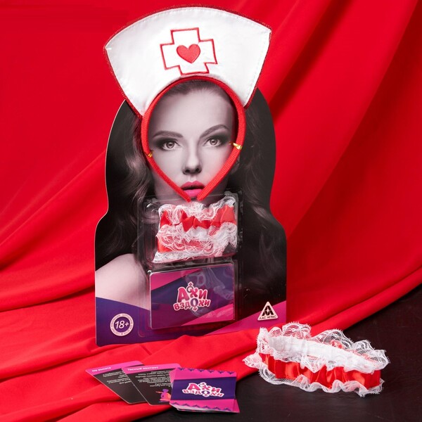 Внутри вас ждут 10 карточек с горячими эротическими позами. Изучите карточки, выберите, какие позы будете использовать сегодня, и воплотите написанное в жизнь. Партнёрша может надеть ободок медсестры и подвязку, чтобы добавить образу перчинки.
