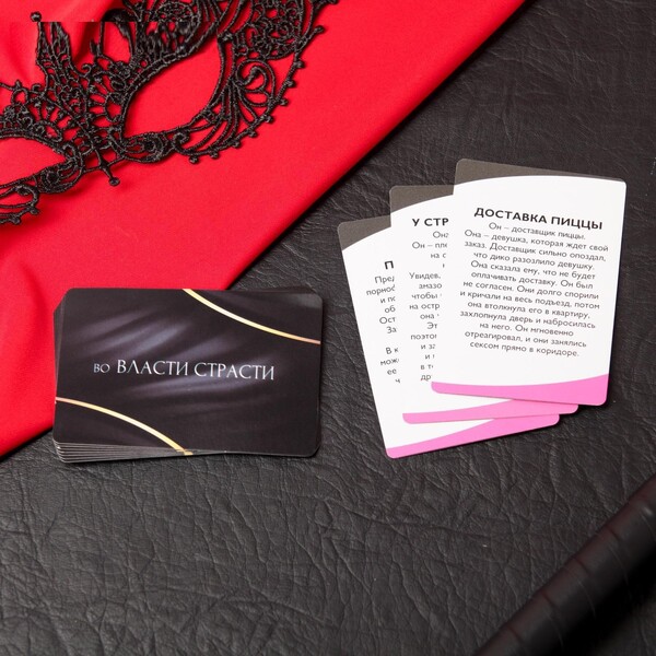 Внутри вас ждут 10 карточек с горячими сценариями ролевых игр. Изучите карточки, выберите подходящие и воплотите написанное в жизнь. Используйте плётку и маску, которые есть в комплекте, чтобы добавить в игру перчинку.