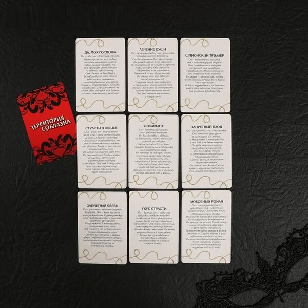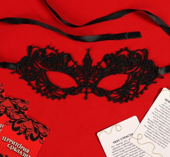 Внутри вас ждут 10 карточек фантами — для него и для неё. По очереди вытягивайте карточки и выполняйте то, что на них написано. Используйте маску и 2 кубика чтобы сделать игру более пикантной.