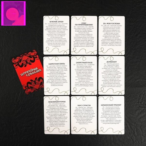 Внутри вас ждут 10 карточек фантами — для него и для неё. По очереди вытягивайте карточки и выполняйте то, что на них написано. Используйте веревку и 2 кубика чтобы сделать игру более пикантной.