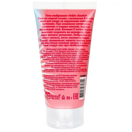 В продолжении классной вечеринки предстоит бурная ночь? Лубрикант «Intim classic» идеально подходит для романтического свидания. Он обеспечивает нежное проникновение, чувственное скольжение. В состав геля входят специальные компоненты: витамин Е стимулирует защиту слизистых, алоэ вера дополнительно увлажняет. Гель-лубрикант абсолютно без запаха. Легко смывается водой. Совместим с любыми изделиями из латекса и синтетических материалов.