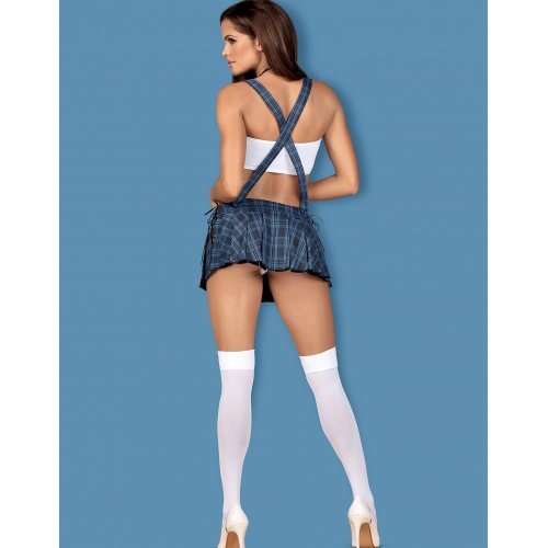 В костюм входят: топ, юбочка, трусики-стринги, галстук, гольфы.