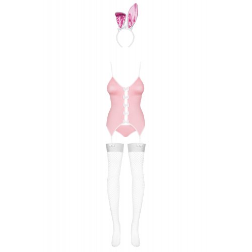 В комплект входят: корсет, трусики, чулки и повязка на голову с ушками.