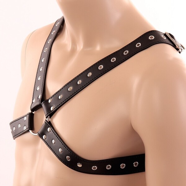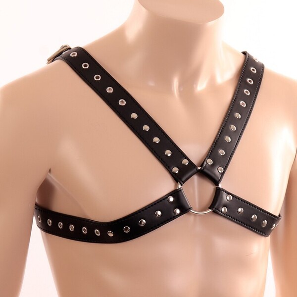 Черная мужская сбруя подчеркнет плечи и грудь мужчины!