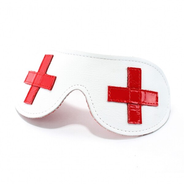 Маска из натуральной белой кожи с красными лаковыми крестами отлично подойдет для тематической игры. Надежная резинка обеспечивает хорошую фиксацию. Если решите изменить образ ,просто переверните маску другой стороной. Подклад выполнен из перфорированной красной кожи. Благодаря эластичной резинке, размер универсальный
