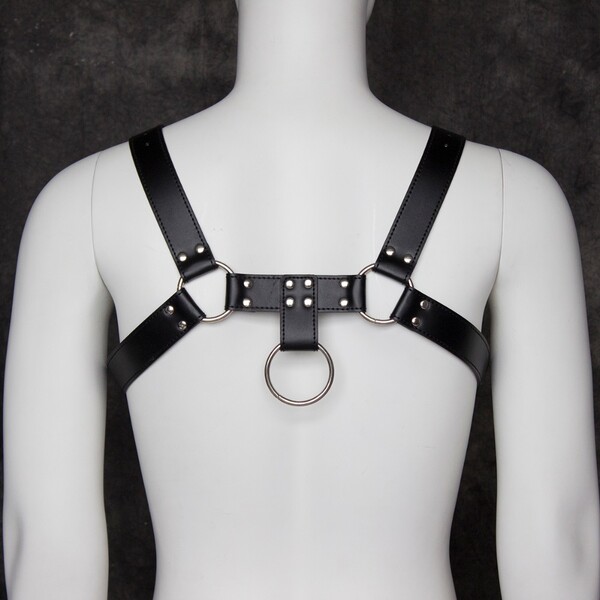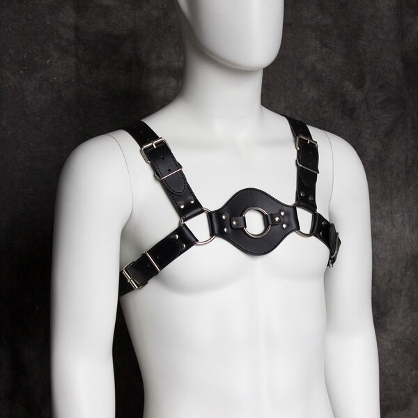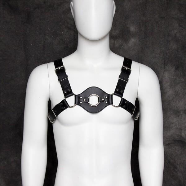 Черная мужская сбруя подчеркнет плечи и грудь мужчины!