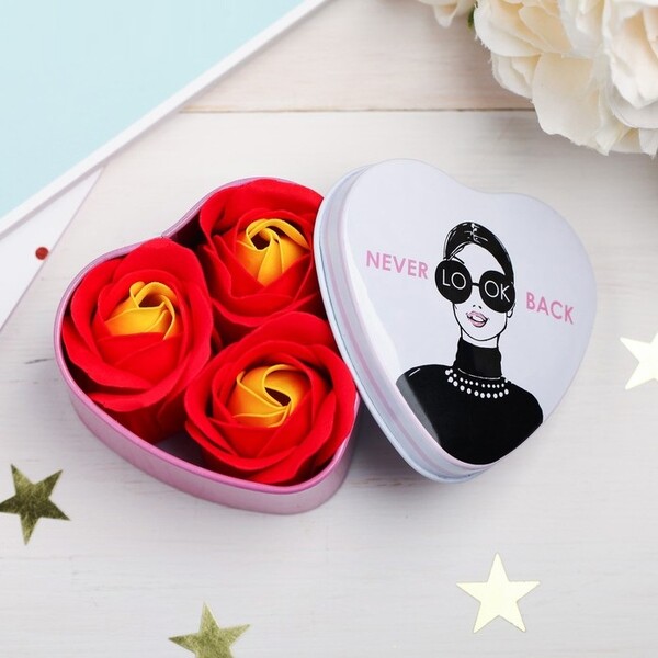 Мыльные лепестки в шкатулке-сердце Never look back