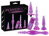 Набор анальных игрушек PowerBox состоит из 4 прозрачных фиолетовых предметов с синим отливом:
