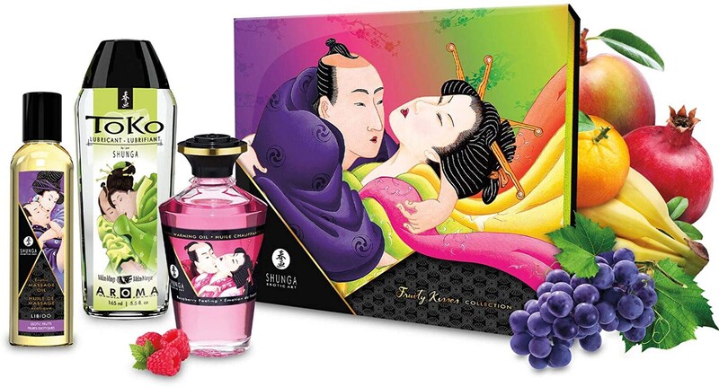 Набор Shunga Fruity Kisses - это набор для самой изысканной сексуальной прелюдии с ягодно-фруктовым вкусом и экзотическим ароматом. Вознесите свои чувства к новым высотам и испытайте сумашедшую прелюдию с фруктовым миксом.