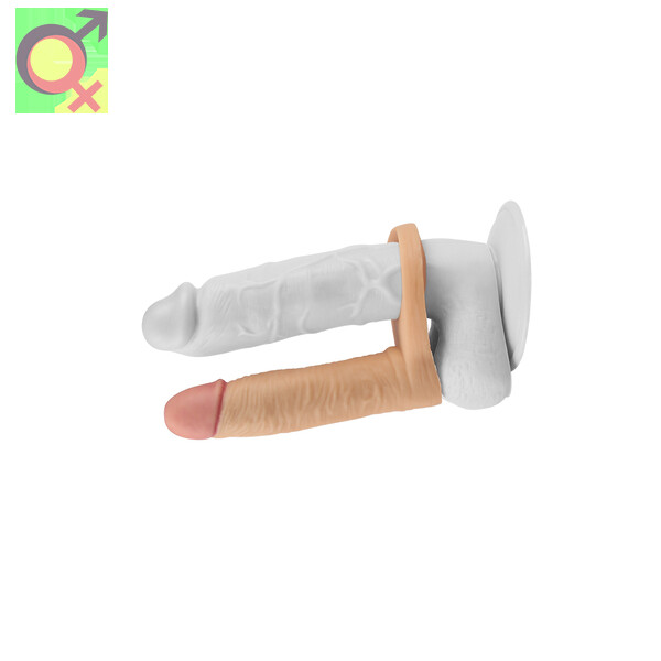 Реалистичная насадка для двойного проникновения с 10 режимами вибрации, крепится с помощью петли на пенис