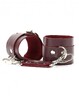 Оковы выполнены из натуральной кожи бордового цвета. Металлическая пряжка крепко удерживает в подчинении, кожаное соединение на карабинах фиксирует наручники вместе, ремни позволяю выбрать нужный размер. Стильный аксессуар поможет воплотить эротические фантазии в реальность.