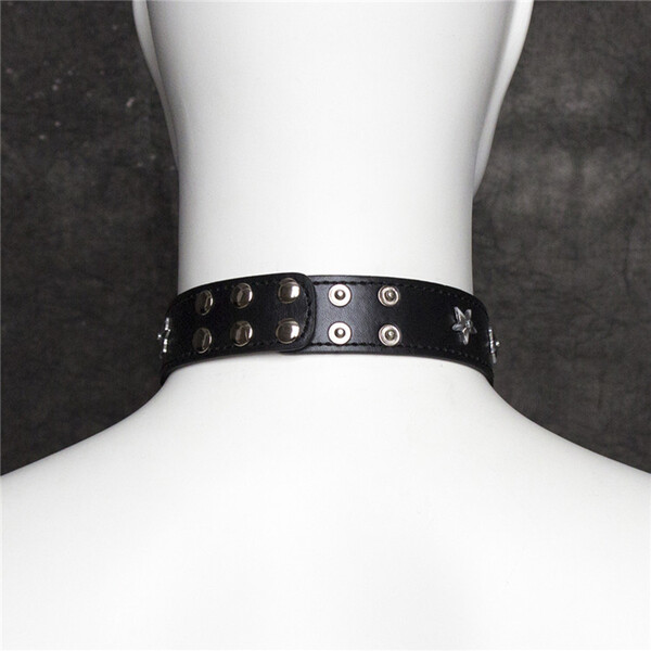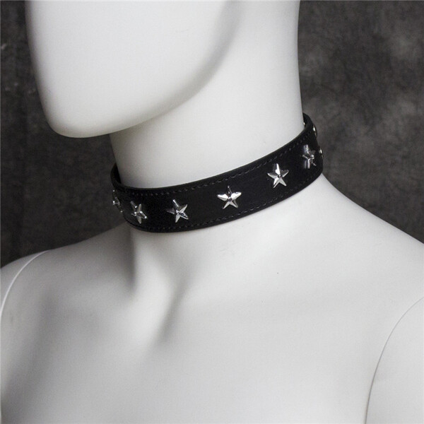 Эстетичный ошейник, нежный и жесткий одновременно, прекрасный вариант для тех, кто решил попробовать игру в подчинения.Оригинальный черный ошейник. По периметру украшен металлическими заклепками в виде звезд. Крепление в виде заклепок.