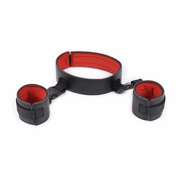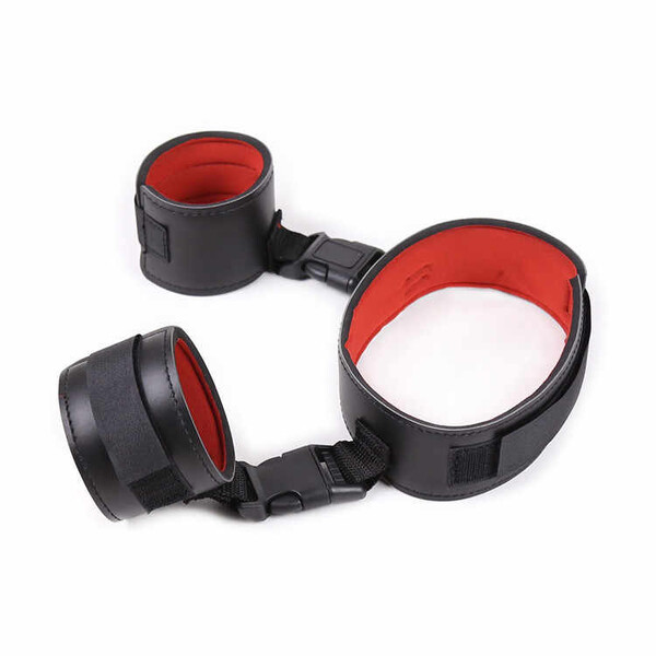 Эстетичный ошейник с наручниками, нежный и жесткий одновременно, прекрасный вариант для тех, кто решил попробовать игру в подчинения.