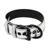 Застегивается ошейник с помощью пряжки, регулируется по объему при помощи ремня на застежке