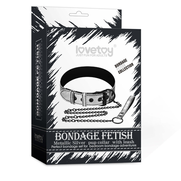 Ошейник с поводком на цепи Bondage Fetish Black Matt Collar With Leash серебристый