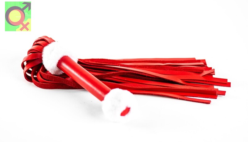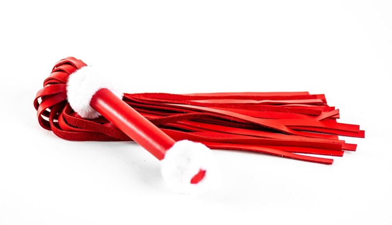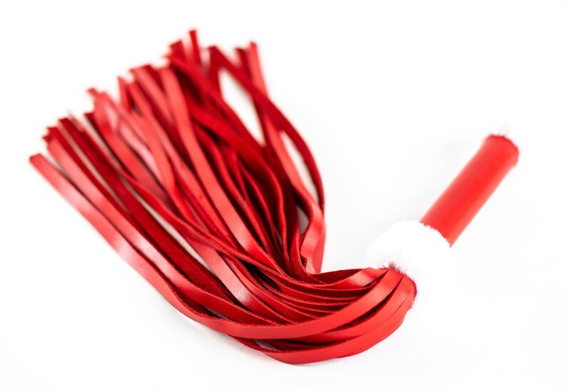 Роскошная плеть из натуральной кожи красного цвета с декором в виде белоснежного меха. Очень красивый и функциональный аксессуар!
