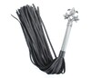 Плеть выполнена из натуральной кожи черного цвета. Металлическая рукоятка диаметром 2см украшена красивым резным наконечником. Плеть имеет 40 длинных хвостов, их длина 40 см. Общая длина изделия 60см.