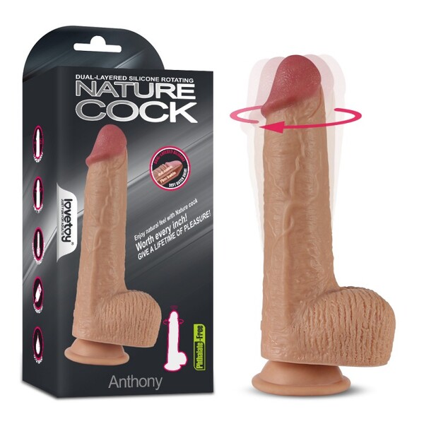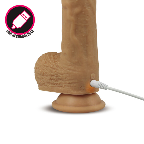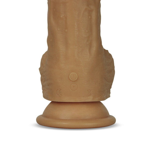 Реалистичный вибратор с ротацией на присоске с мошонкойи с функцией нагрева.Имеет 5 режимов вибрации и 5 режимов ротации.