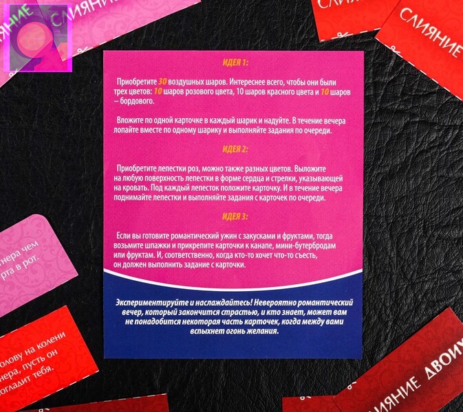 У вас намечается незабываемое романтическое свидание с партнёром? Тогда берите эту игру, добавляйте несколько идей, которые вы найдёте внутри, и превратите этот вечер в такой, что запомнится надолго.