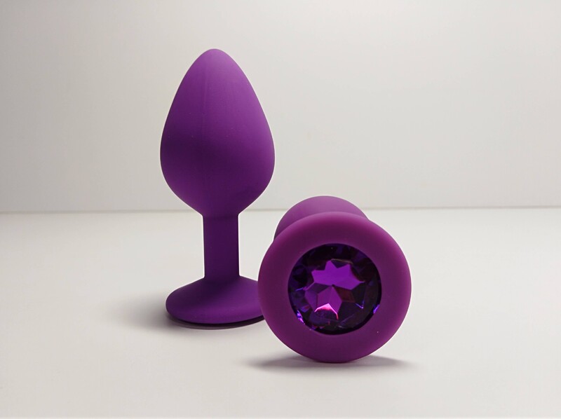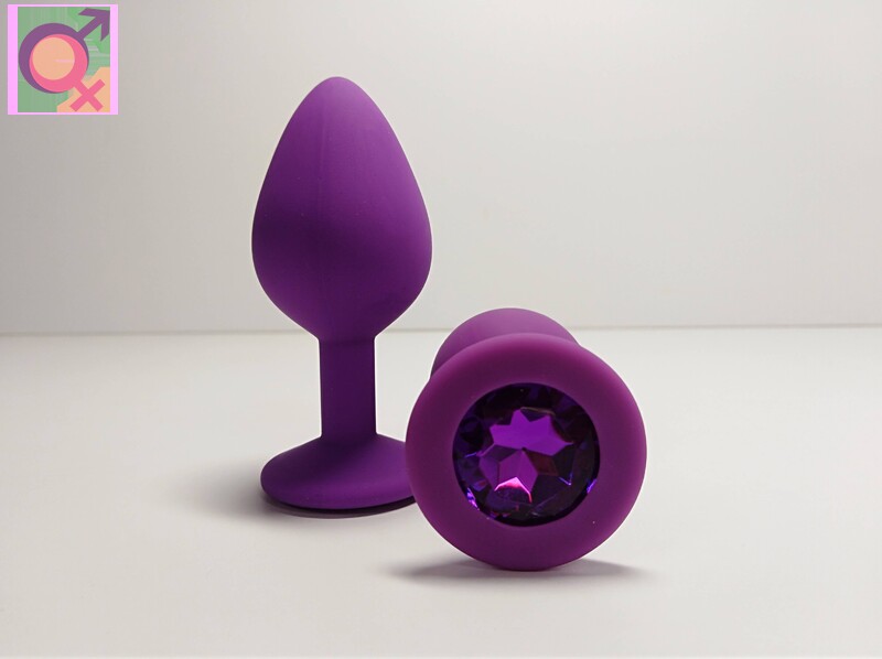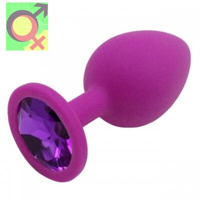 Анальная пробка с кристаллом изготовлена из медицинского силикона пурпурного цвета с фиолетовым кристаллом S