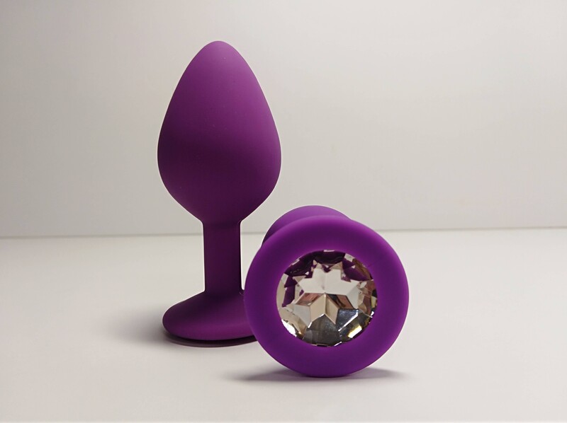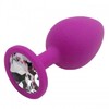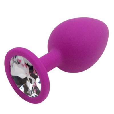 Анальная пробка с кристаллом изготовлена из медицинского силикона пурпурного цвета с прозрачным кристаллом S