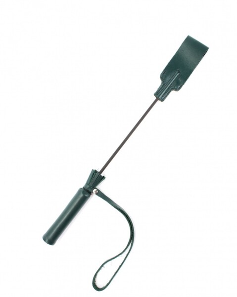 Рукоятка стека из натуральной кожи изумрудного цвета, на конце девайса расположен кожаный шлепок.