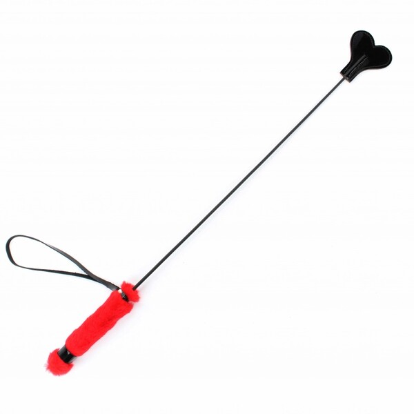 Стек с ручкой из красного меха, перетянутой лаковыми кожаными пряжками, отлично подойдет для игр в стиле БДСМ Light. Наконечник выполнен из натуральной лаковой кожи черного цвета в форме сердечка. Мягкий и гибкий он сделает подчинение максимально приятным.