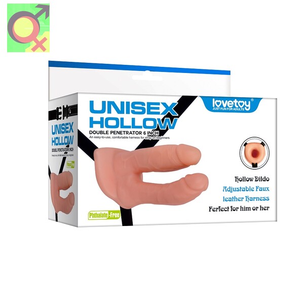 Полый страпон на ремне для двойного проникновения.