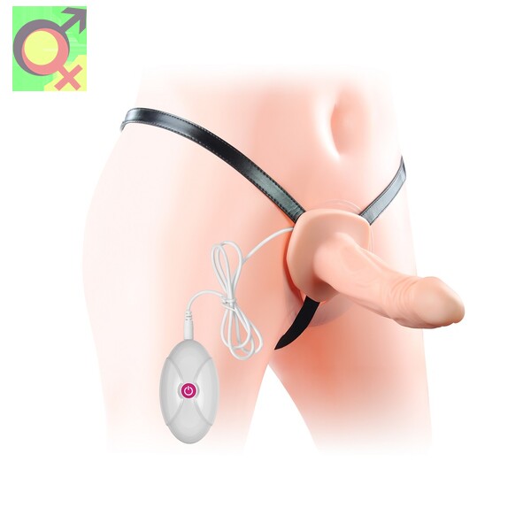Полый страпон на ремне с вибрацией.