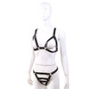 Универсальный комплект для БДСМ игр. Лиф и трусики состоящие из ремней, создают образ властной госпожи - такой доступной и в то же время откровенно сексуальной. Добавив к этому наряду кляп и наручники вы получите образ послушной рабыни - готовой к исполнению любых фантазий.