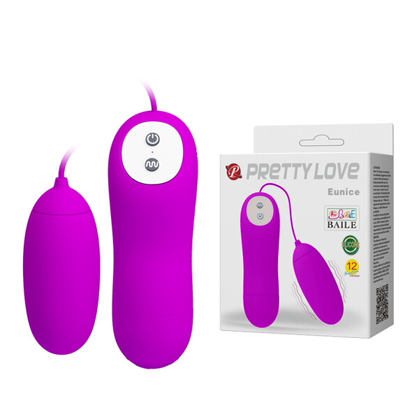 Вибро-яйцо Pretty Love Eunice снабжёно 12 режимами вибрации и управляется с помощью кнопки на пульте управления.
