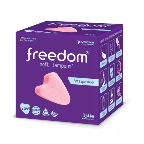 Тампоны нового поколения FREEDOM®без веревочки! Тампоны FREEDOM®обеспечивают не только надежную защиту от выделений в критические дни, но и дают возможность не отказываться от своих обычных увлечений и планов! Любовь, спорт, SPA, танцы или бассейн – с FREEDOM®все это возможно даже в критические дни!